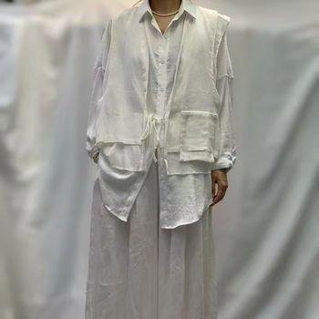 2025 Новый женский однотонный хлопковый льняной Комплект из трех предметов длинная Плиссированная Полосатая юбка верхняя одежда рубашка Повседневный стиль манжеты